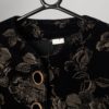 Women’s vintage 80s black cropped Bolero jacket in velvety type fabric, with gold printed floral pattern, and epic statement buttons.