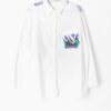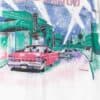 Womens vintage 90s Hollywood blouse shirt by Michel Adam of Fashion TV. 100% cotton, with buttoned fastening and open chest pocket. The artwork on the chest pocket is great, but the artwork on the back is simply stunning! Vintage American DeSoto Chrysler cars cruising past The Brown Derby restaurant in Hollywood California. This is a great piece of American vintage fashion.