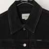 Women’s vintage Calvin Klein black denim jacket. This 90s Calvin Klein denim jacket features grey stitching, two open chest pockets, a button closure and the Calvin Klein logo is embroidered above the left chest pocket. Made from a heavyweight cotton.