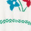 Womens vintage hand knitted short sleeve cardigan in white with red, pink and blue flowers in super cute front flower pot pocket. Green geometric details around sleeves and hem, make …