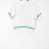 Womens vintage hand knitted short sleeve cardigan white floral cute flower pot pocket – Medium / Large