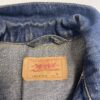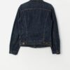 Women’s vintage Levis denim jacket for girls, dark blue trucker jacket. This Y2K Levis denim trucker jacket features two chest pockets with button closures, a button closure and the classic red Levis tab is featured on the left chest pocket. Made from a heavyweight cotton.