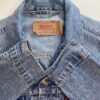 Women’s vintage Levis for girls blue denim jacket. This Y2K denim jacket in blue features the classic Levis red tab, two chest pockets with button closures and a button opening. Made from a lightweight cotton.