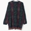 Womens vintage longline cardigan in navy with green and red aztec design and tassels – Medium / Large