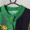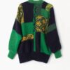 Womens vintage mohair fluffy lined jumper with bold green and yellow regal motifs – Medium / Large