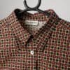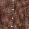Womens vintage patterned blouse in a 70s style with crazy black, red and yellow geometric print. Great quality mid weight cotton, 70s style collar and wonderful mother of pearl shiny buttons (including one spare) make this a really nice item.