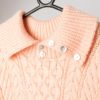 Womens vintage peachy pink cable knit collared jumper with iridescent mother of pearl button detail. Circa 1980s / 1990s. Our recommended size: Medium / Large Label Says: No size or care label Condition: Very good We’ve provided garment measurements below and suggest you compare these to a similar garment you own to determine a good fit. Measurements are taken flat and doubled for waist and hip.