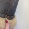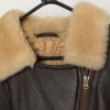 Women’s vintage sheepskin jacket, brown leather flight jacket. This 90s dark brown flight jacket features a real sheepskin snug lining, a sheepskin collar and cuffs, two open side pockets, a zip closure and a buckle closure on the hem. Made in the UK from a heavyweight leather with a snug real sheepskin lining – an amazing, quality jacket!