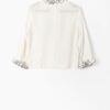 Womens vintage white ruffle blouse in white and navy by Graff Californiawear Circa 1960s 70s. Full length buttoned closure on back. The ruffles are simply gorgeous, and white fabric is semi sheer.