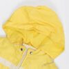 70s 80s vintage yellow light padded fitted ski jacket. This bright jacket features a zip closure, two side pockets with zip closures and a large hood that can be tucked inside the jacket. Made from a mid-weight synthetic blend.